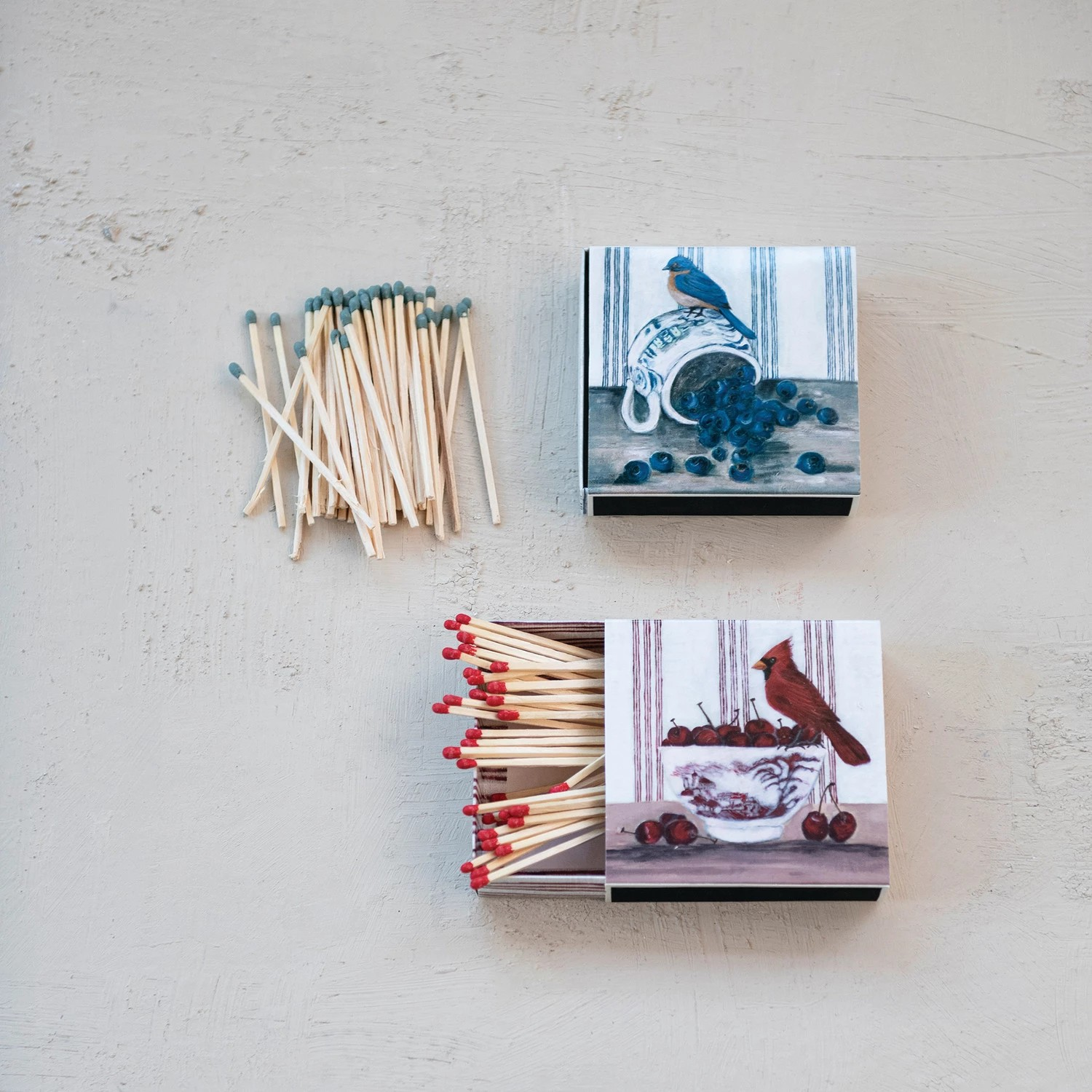 Safety Matches in Matchbox with a bird printed on the front of the box.