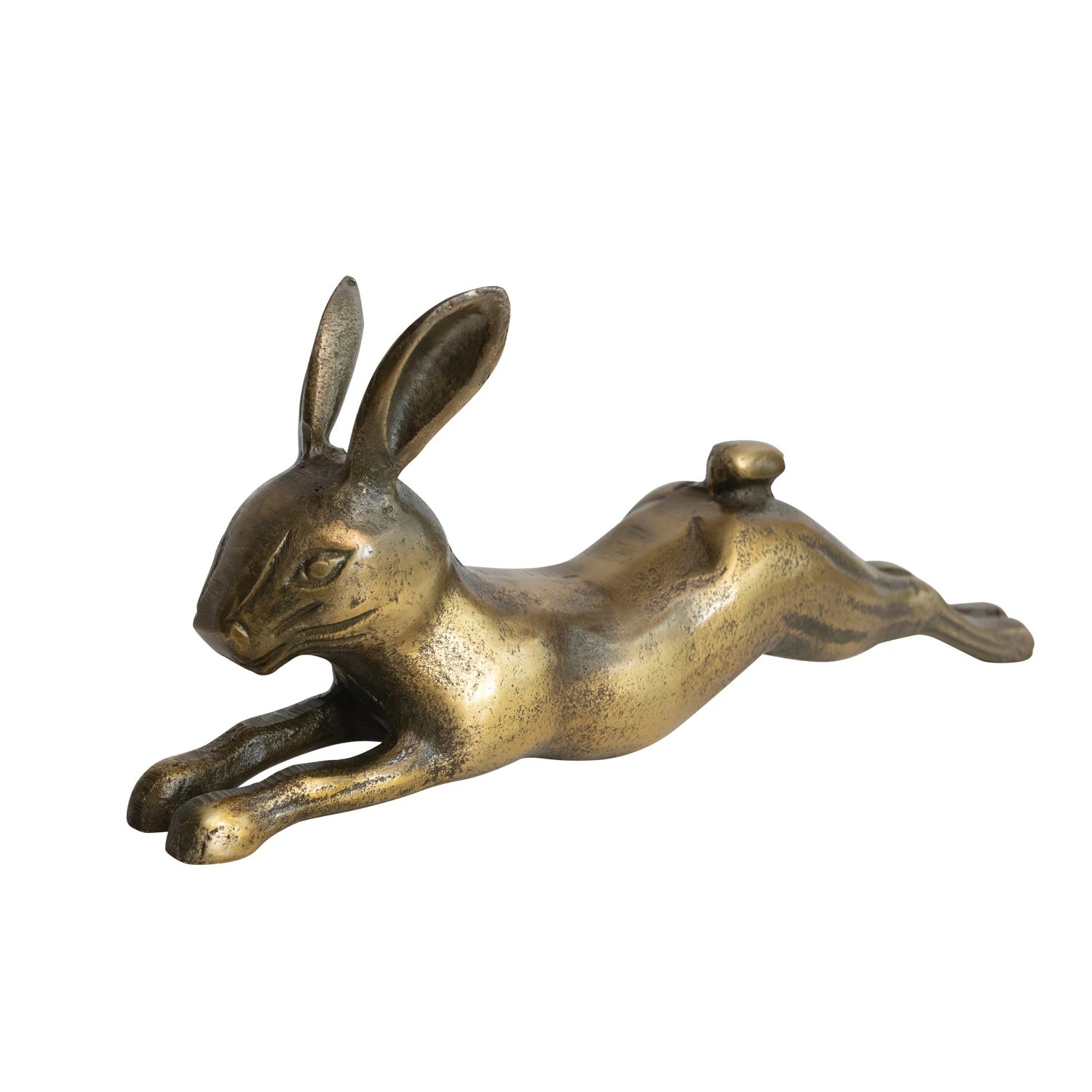11"L x 2-1/2"W x 5"H Cast Aluminum Rabbit, Antique Brass Finish