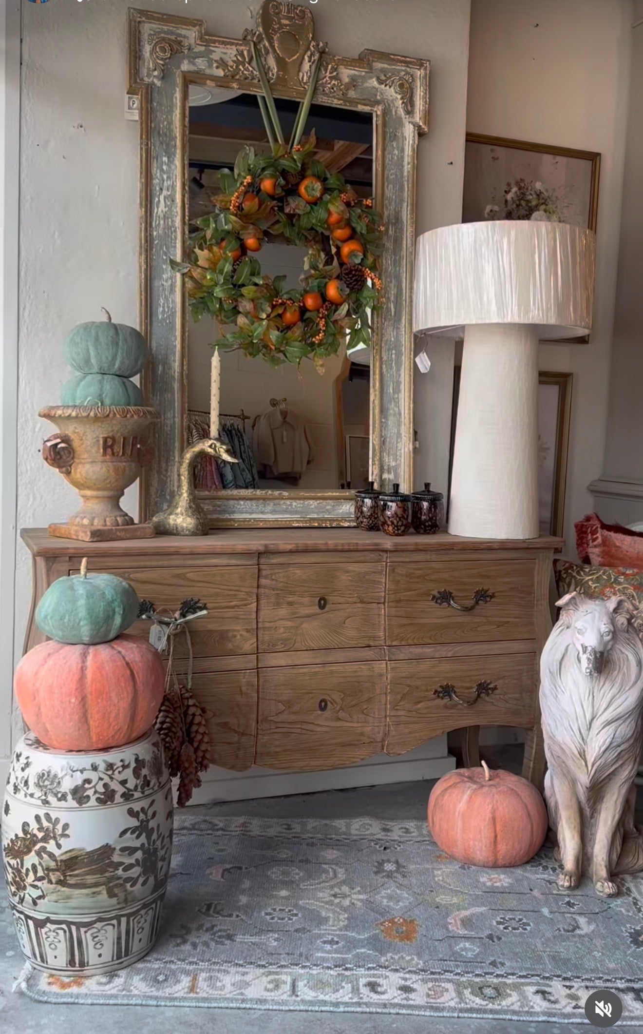 Stunning French inspired mirror with an aged finish. You will find layers of color on this piece from raw wood, light blue/green, and small gold accents. This stunning piece will add architectural interest and warmth to any room.